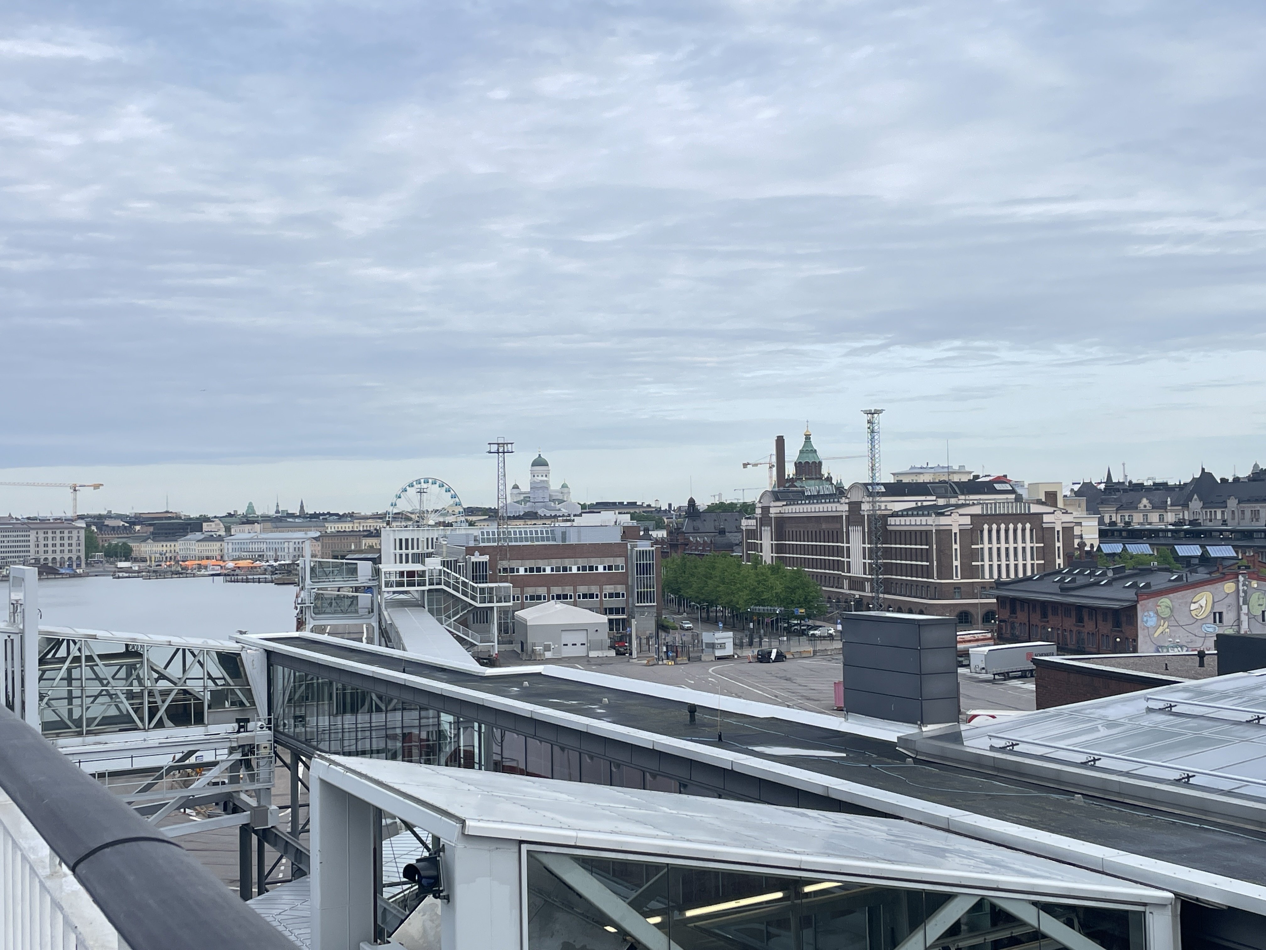 ヘルシンキの港まではホテルから約2km、早朝6:30に出発して徒歩で向かいました。